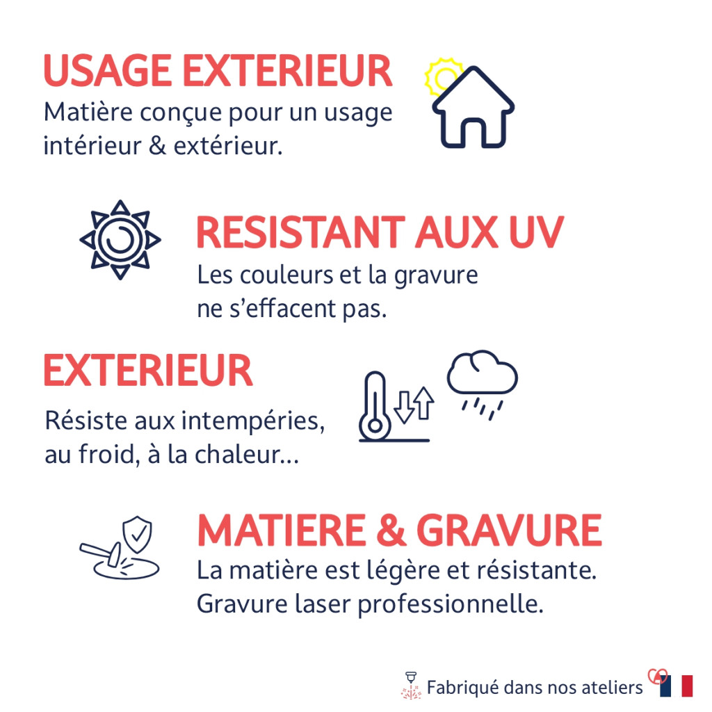 ♦ La majorité de nos produits sont personnalisables en ligne (dimensions, matières, textes & images, couleurs, fixations).